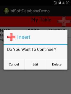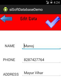 In this program I try to demonstrate the use of sqlite in android. In this demo I took name, phoneno and address from user and store it in database. I have performed Insert, Update and Delete operation through this demo.